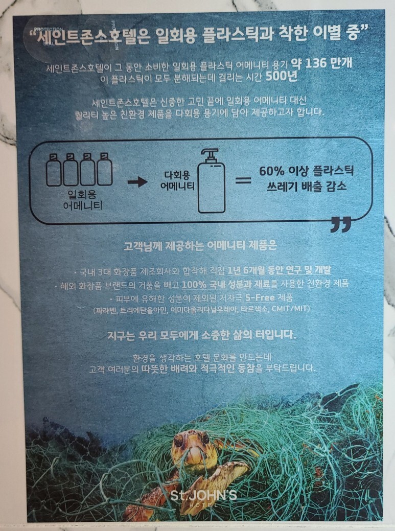 거울 옆에 일회용품 안준다는 글이다.